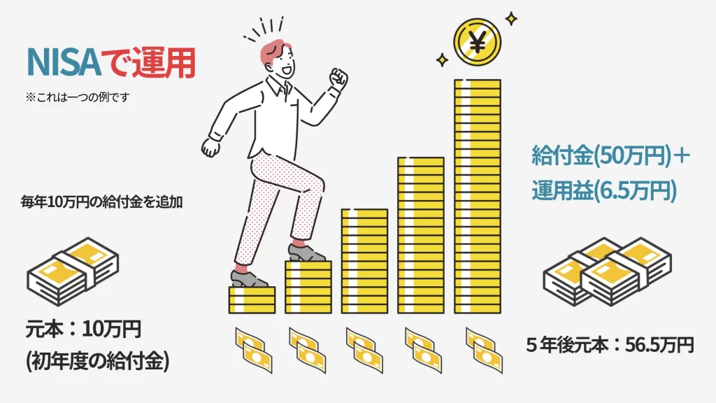 5年後には約56.5万円に!(元本50万円+運用益 約6.5万円)